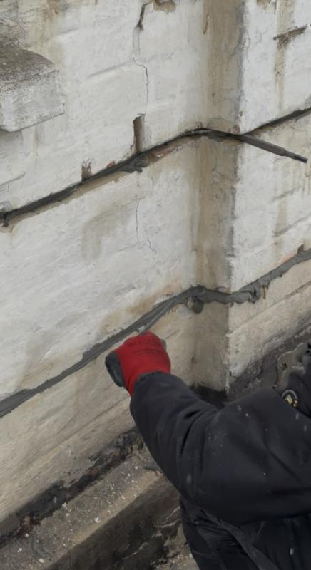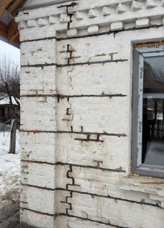 У зоні тріщин у горизонтальних швах кладки виконуються штроби.